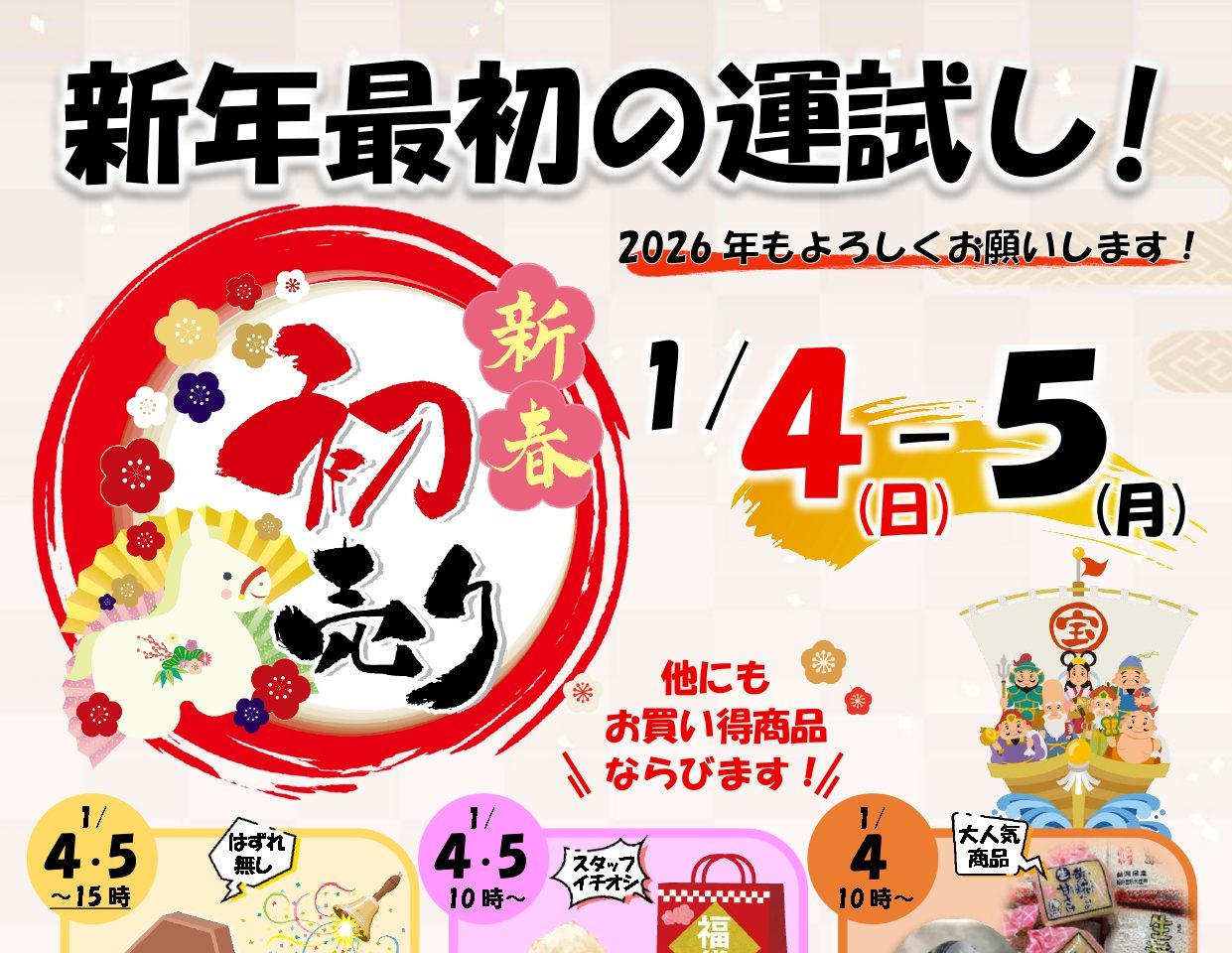 【令和8年1月4日(日)・5日(月)】新年初売り!!