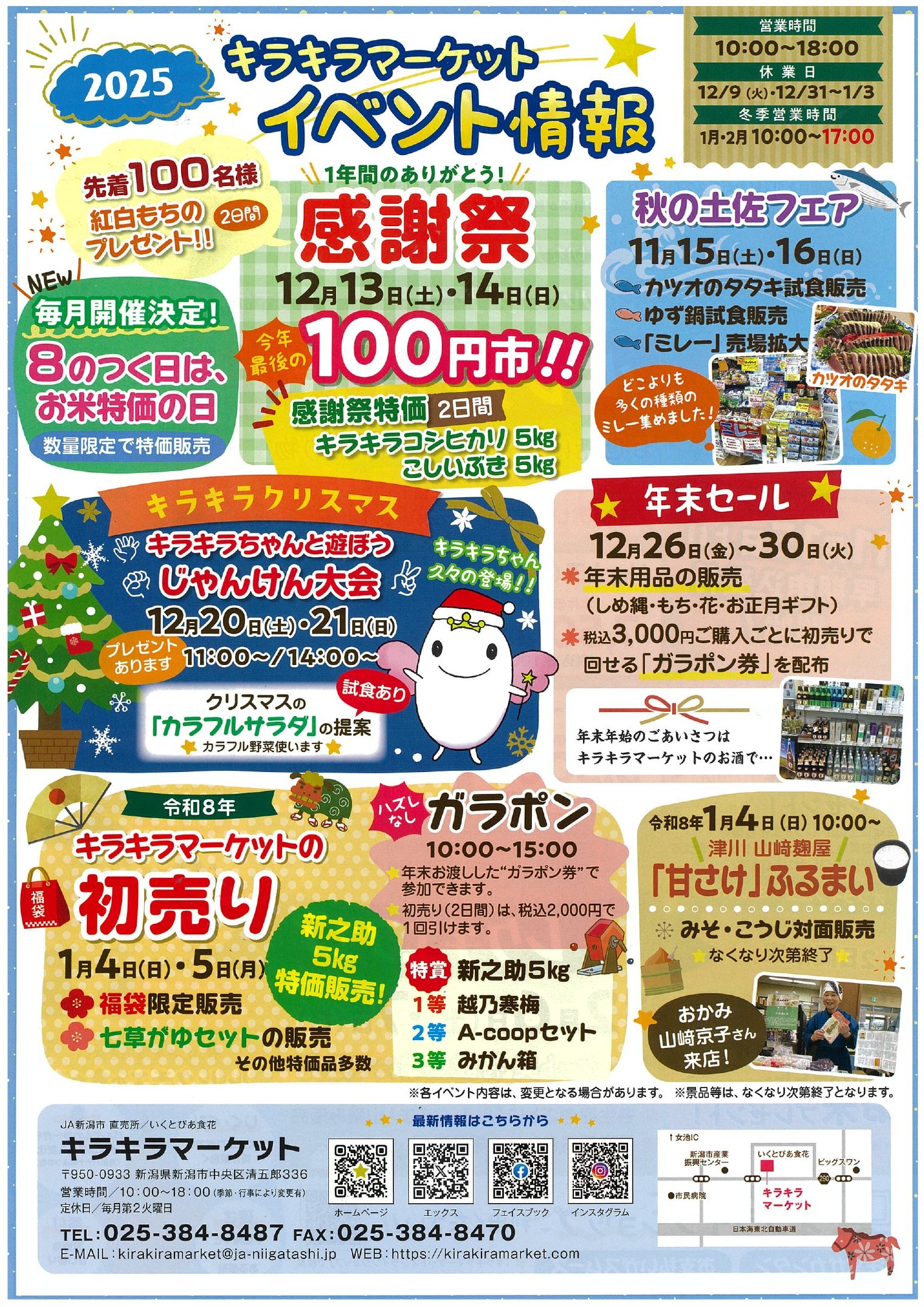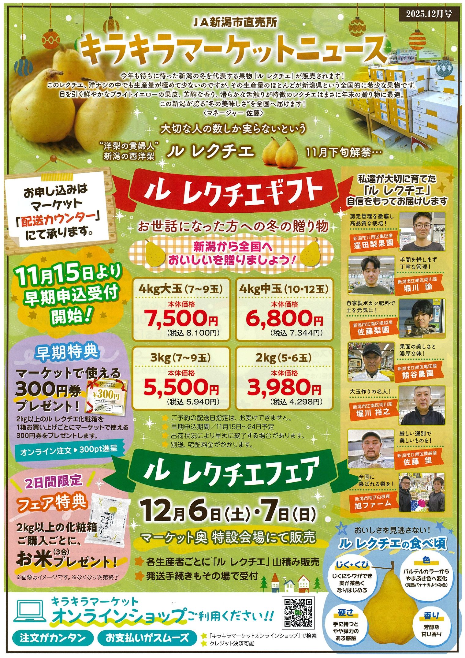 ニュース 2025.11.09 【2025年12月】キラキラマーケットニュース 11・12月のキラキラマーケットはイベントが盛りだくさん!!! 今年のル レクチエギフトもぜひご利用くださいませ。 すべての記事一覧 ニュース